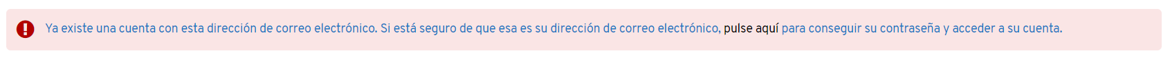 Si ya tenías una cuenta creada, aparecerá este mensaje:
